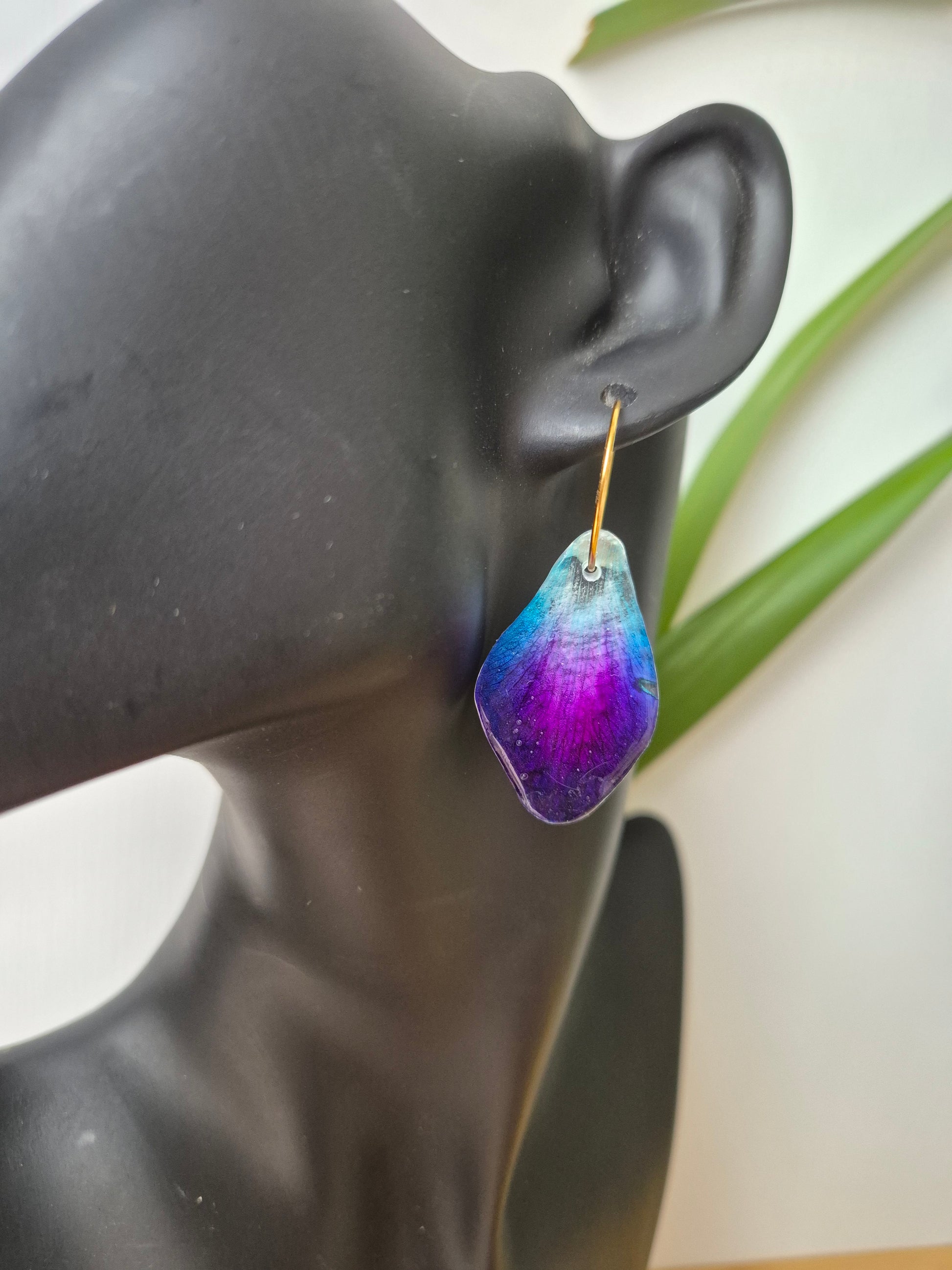 Pendientes realizados de pétalos de orquidea real Dendrobium. Terminación en dorado.