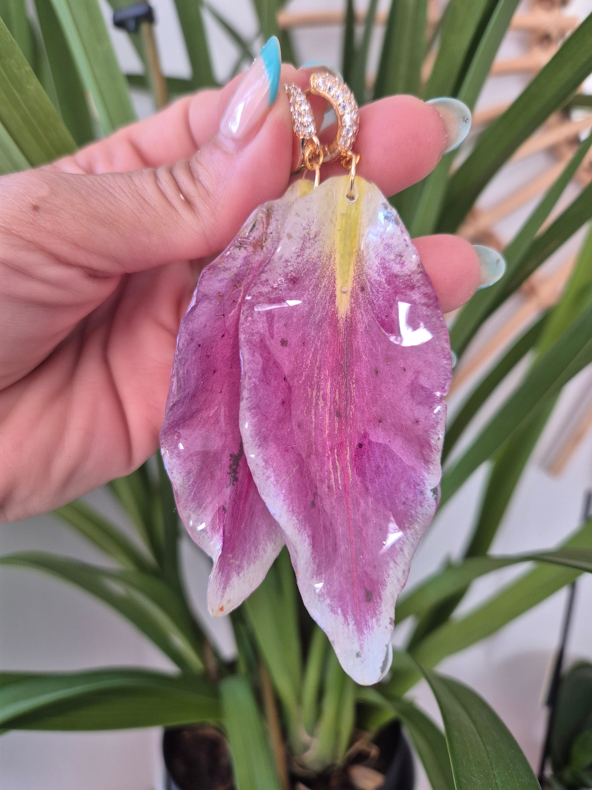 Pendientes de Pétalo de lirio con terminación en aro dorado